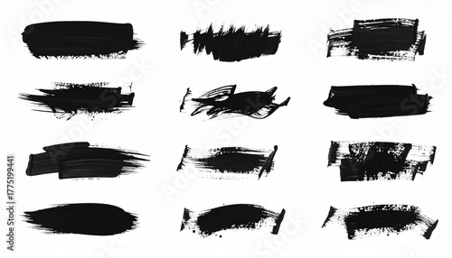 black, texture, paint, ink, artistic, abstract, rough, smooth, splatter, bristle, solid, smear, streak, mark, grunge, expressive, creative, visual, aesthetic, minimal, modern, design, set, collection, variation, style, technique, bold, dynamic, contrast, white, background, grid, layout, composition, art, resource, digital, hand-made, raw, edgy, graphic, element, brushwork, messy, organic