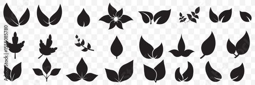 Set of Black leaf icons. Green color. Leaf green color icon logo. Leaves on white background. Ecology. Vector illustration on Transparent Background. EPS 10.