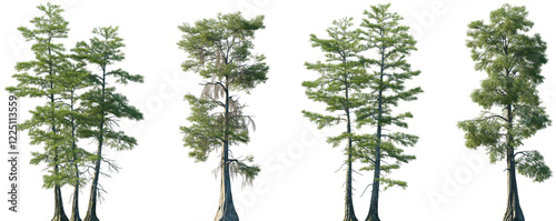 Set of Taxodium distichum and Taxodium ascendens frontal set trees isolated png on a transparent background perfectly cutout