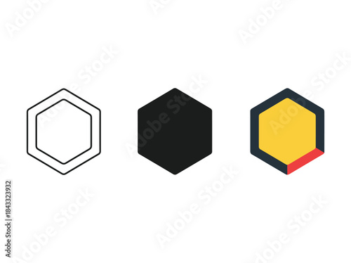 hexagon, shape, geometric, design, black, yellow, red, outline, solid, colourful, graphic, element, symbol, icon, modern, simple, minimalist, abstract, polygon