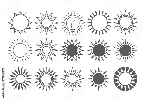 Set of vector sun icons. Sun icon set. Sunset icon collection. Hand drawn sun icon