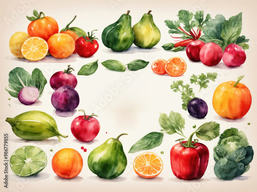 food, watercolor, fruit, fresh, organic, isolated, vegetable, healthy, background, green, set, vegetarian, illustration, nature, plant, natural, diet, leaf, garden, health, drawing, tomatoes, harvest, white, vector, design, collection, vitamin, raw, summer, ingredient, cabbage, nourishment, pepper, sweet, cucumber, strawberry, art, carrot, agriculture, pumpkin, colours, eating, apple, paint