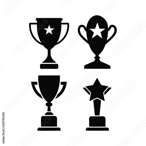 trophy, award, winner, success, achievement, competition, sport, celebration, design, vector, icon, silhouette, black-and-white, illustration, graphic, modern, flat, simple, prize, champion, emblem, motivational, design element, medal, ribbon, contest, recognition