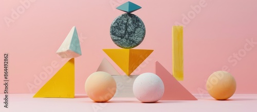 shape, balancing, background, pink, balance, pattern, abstract, three-dimensional, circle, triangle, shape, still life, sphere, plank, stack, seesaw, arrangement, angular, copy space, impossible, indoor, nobody, round