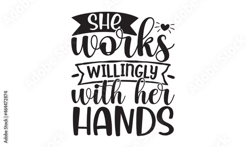 She works willingly with her hands, Typography slogan about hairstyle, Calligraphy phrase for beauty salon, hairdressers, decorative cards, beauty blogs, Calligraphy phrase for beauty salon