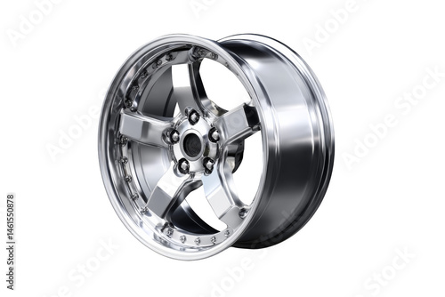 Shiny alloy wheel with a modern design. Png, Transparent background.