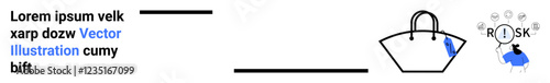 Shopping bag with water detail, risk concept icon with interconnected nodes. Ideal for retail, e-commerce, sustainability, risk management, branding, environmental awareness, flat landing page banner
