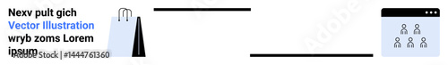 Shopping bags paired with a digital webpage showing user icons. Ideal for e-commerce, shopping, online stores, user engagement, digital marketing, retail, simple landing page