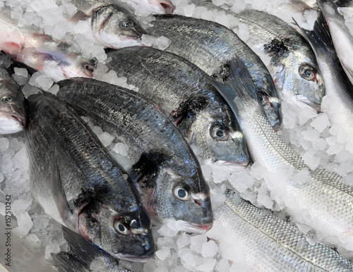 showcase of seafood in the sea market