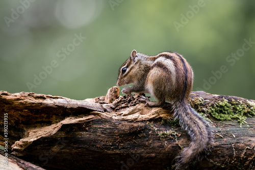 Siberian chipmunk (Eutamias sibiricus) in the forest in Noord Brabant in the Netherlands