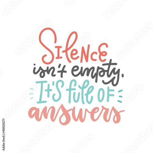 SILENCE IS NOT EMPTY, IT IS FULL OF ANSWERS motivational hand lettering phrase quote typography. Color vector isolated hand written text.