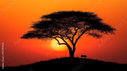 sunset, sunrise, africa, savanna, acacia, tree, zebra, silhouette, animal, wildlife, nature, landscape, scenery, horizon, sky, orange, red, warm, hot, summer, evening, morning, dusk, dawn, light, sun, shadow, dark, vibrant, picturesque, majestic, tranquil, serene, peaceful, wild, plain, safari, travel, photograph, image, photo, beauty, wilderness