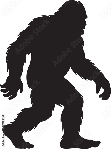 silhouette, vector, illustration, legend, myth, monster, forest, mystery, animal, creature, ape, hairy, unknown, folklore, black-and-white, nature, wild, sighting