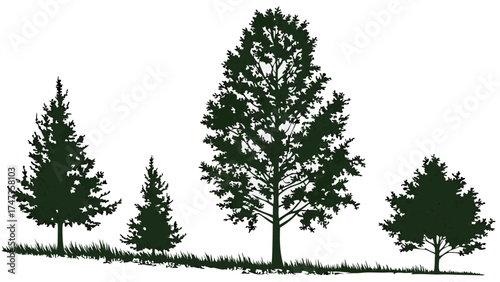 Silhouette of Four Trees Nature Illustration Graphic Design Element Vector Illustration.