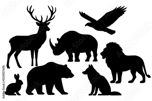 cervid, bear, lion, eagle, rabbit, rhino, wolf, silhouette, animal, wildlife, nature, predator, vector, transparent, herbivore, wilderness, black, graphic, icon, forest, zoo, safari, environment, creature, species, habitat, fauna, ecosystem, park, scenery, diverse, stylised, illustration, minimal, artistic, natural, shadow, outline, drawing, creative, dynamic, animal kingdom