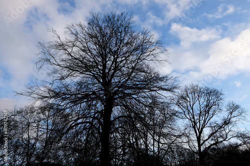 tree, silhouette, winter, leafless, lonely, alone, sky, cloud, nature, blue, outdoors, tree branch, forest, season, fisheye, leaf, autumn, wood, landscape, background, plant, afternoon