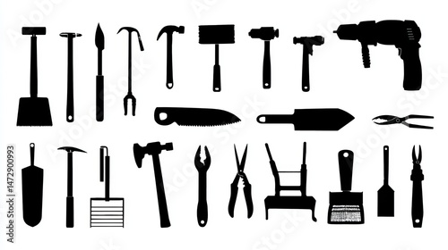 tool, electrician, icon, kit, mechanical, plumber, vector, design, isolated, kitchen, hand, illustration, construction, paint, work, silhouette, industry, set, safety, repair, carpenter's shop, hardware, wrench, instrument, screwdriver, plumbing, hammer, equipment, spanner, screw, painter, builder, glove, toolbox, hand tool, ladder, tape, collection, symbol, handyman, clip art
