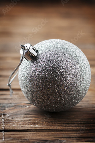 Silver ball for christmas on the wooden table
