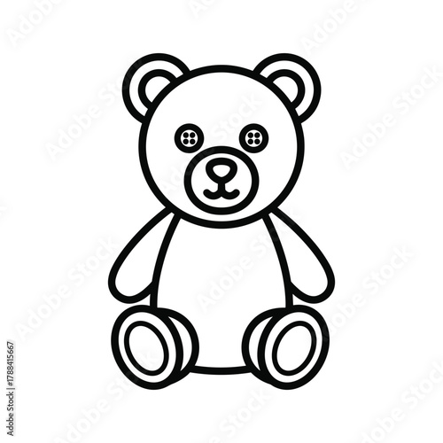 Simple black and white line drawing of a teddy bear