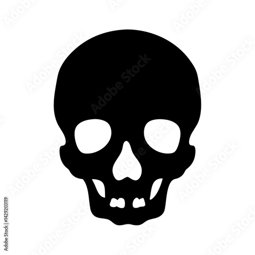 Simple silhouette image of a black skull on a white background plane