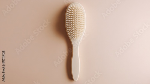 Simple white hairbrush with bristles on a soft beige background showcasing essential grooming tools