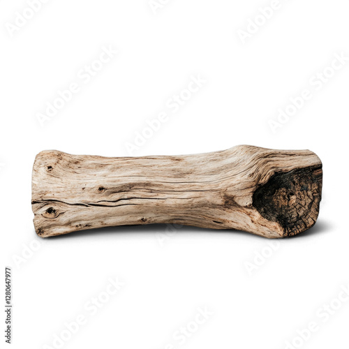 Single piece of natural driftwood with textured surface isolated on transparent background