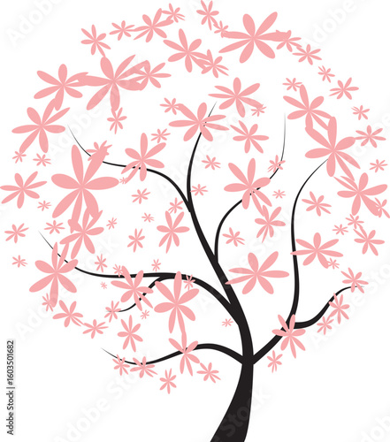 tree, flower, spring, vector, tree branch, nature, leaf, design, floral, art, pink, blossom, illustration, cherry, silhouette, plant, decoration, season, pattern, summer, sakura, japanese, flower, bird, autumn