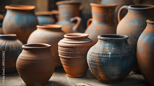 Skillfully crafted pottery pieces displayed, highlighting the simplicity of earthenware and the artisan's craftsmanship in various shapes and textures