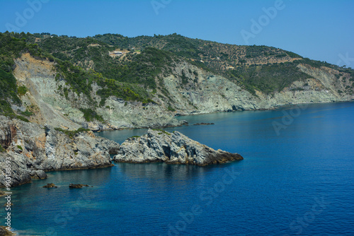 sea, landscape, beach, coast, water, nature, mediterranean, island, bay, greece, travel, sky, summer, mountain, view, ocean, rock, vacation, coastline, mountain, tour tourism, tree, shore, blue, skopelos