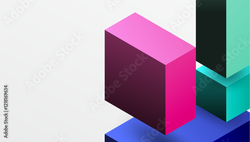 Sleek abstract design featuring isometric 3D blocks in a clean, modern composition. Perfect for tech-inspired themes, with vibrant colors and geometric precision