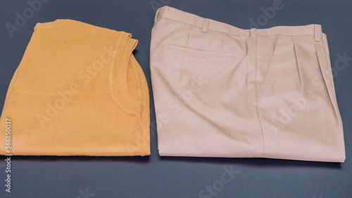 lay, flat, background, isolated, fashion, casual attire, sweater, brown, lining, elegance, pair, clothes, retro, texture, man, protection, colours, object, style, clothing, vintage, comfortable, black, pleated, loop, belt, sleeveless, pleat, beige, folded, pressed, used, worn, unisex, cotton, polyester, blend, design, pocket, shadow, display