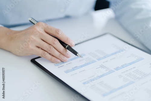 Small business accounting Businesswoman Accountant verify growing business with calculator. Accountancy