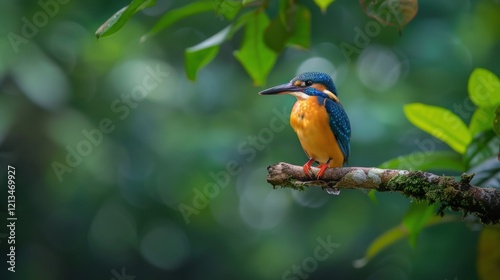 Small colorful Kingfisher bird in natural forest habitat, AI generated image