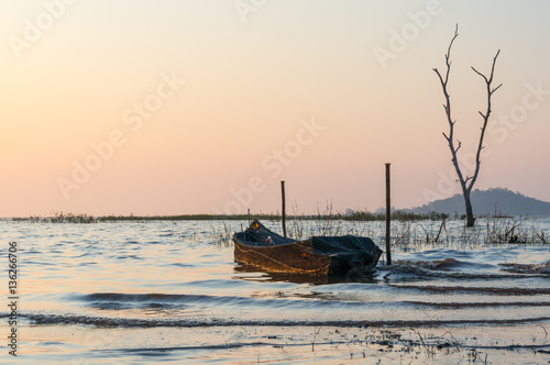 small fishing boat at Bang Phra Reservoir Sriracha,Chonburi, Thailand.