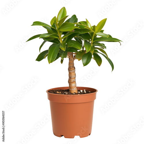 plant, potted, green, leaf, glossy, brown, plastic, pot, indoor, decoration, small, healthy, vibrant, compact, foliage, houseplant, nature, growth, dirtied, container, gardening, home, decor, fresh, lush, stem, tree branch, leaf, ornamental, botany, horticulture, natural, environment, living, room, office, desk, tabletop, greenery, interior, design, aesthetic, peaceful, calming