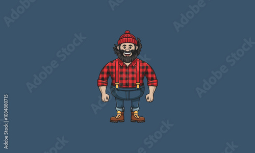 lumberjack, plaid, red, shirt, suspenders, beard, hat, beanie, boot, jean, cartoon, vector, illustration, character, outdoors, rugged, men at work, forest, timber, wood, smile, happy, flannel, strong, quirky, unique, design, creative, casual attire, fun, man, cheerful, friendly, artistic, iconic, traditional, rustic, energetic, bright, hard-working, relaxed, animated, timbering, natural, style