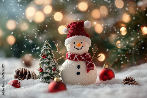 snowman, christmas, winter, snow, holiday, christmas, decoration, hat, cold, card, tree, snowflake, vector, celebration, december, season, happy, foulard, toy, new year, santa, illustration, fun, cartoon, greeting