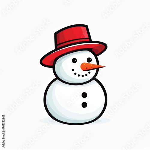 Snowman with Red Hat and Carrot Nose on Winter Background