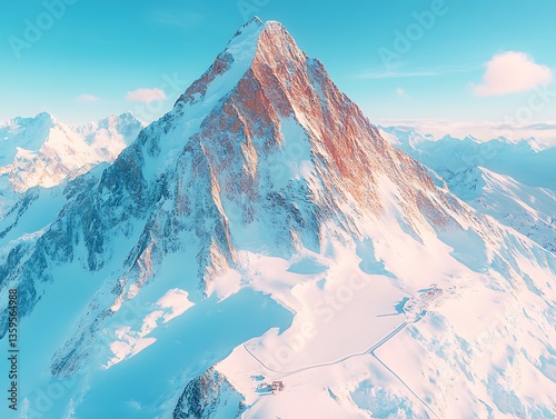 Snowy Mountain Peak Under Clear Blue Sky on a Sunny Day Scenery