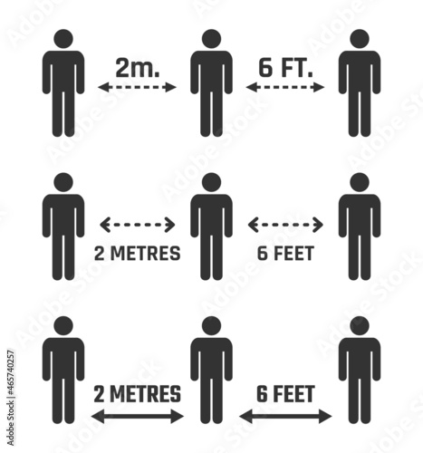 Social distancing icon set, keep distance signs, coronavirus quarantine measures