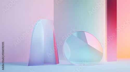 Soft pastel gradients and geometric shapes create a serene minimalist abstract backdrop