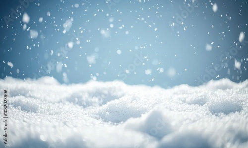 Soft Snowflakes Gently Falling on a Melting Snow Surface with a Calm Blue Background Creating a Serene and Magical Winter Wonderland Atmosphere