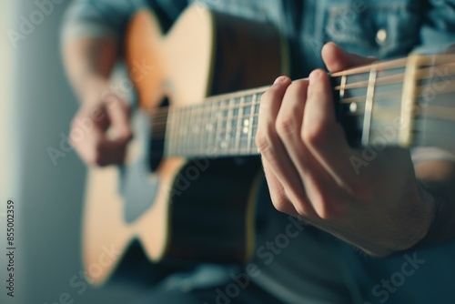 Soulful Melodies: Musician Playing Acoustic Guitar in Cozy Dimly Lit Room