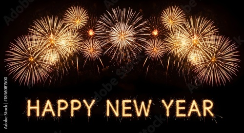 new year, celebration, fireworks, sparkler, night, gold, light, holiday, festive, explosion, party, greeting, typography, banner, eve, sparkle, burst, display, black, season, text, event, congratulation, decoration, december, jan