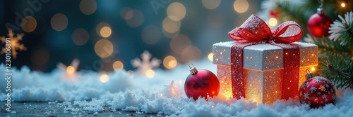Sparkling snowflakes and glittery ornaments on a frosted glass Christmas box, Ornaments, Holiday decorations, Winter wonderland