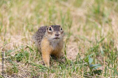 Speckled ground squirrel animal stands in grass