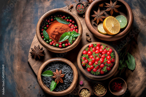 spices in a wooden bowl, created with AI