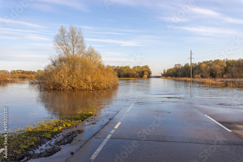 natural disaster, blue, flood, wet, horizon, sky, climate, pool, weather, grass, water, environment, meadow, nature, season, spring, tree, springtime, landscape, river, no people, spate