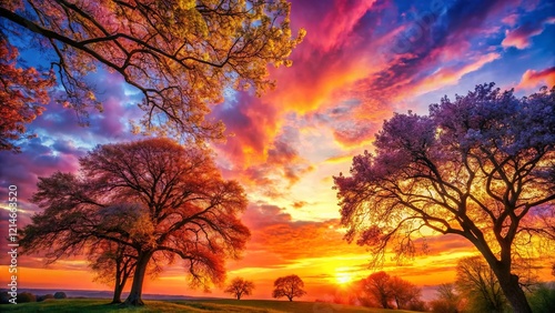 Spring Trees Silhouette Against a Vibrant Sky - Panoramic Landscape Photography