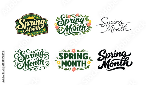 Spring Typography Variations. Spring Month Typography. Set lettering. harmonious lettering variations of the same emblematic concept, each with different